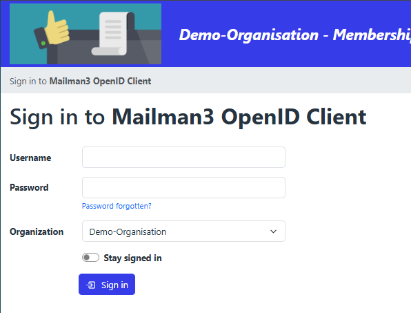 Admidio and Mailman3 should now be set up to use Admidio for logging in to Mailman3. If you log out of Mailman3 (or open an incognito browser window) and try to log in again, you will be shown the Admidio login screen and then redirected back to Mailman3 after a successful login.