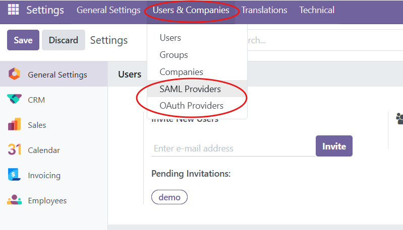 Odoo provides several apps that offer OpenID Connect login to Odoo, we are using and describing the Authentication OpenID Connect (auth_oidc) here. It supports auto-provisioning of users (i.e. new users are automatically created in Odoo, when they successfully log in through Admidio), but groups are not supported.