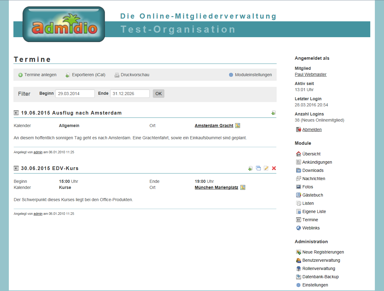 Notwendige Admidio-Version: 3.0 oder höher