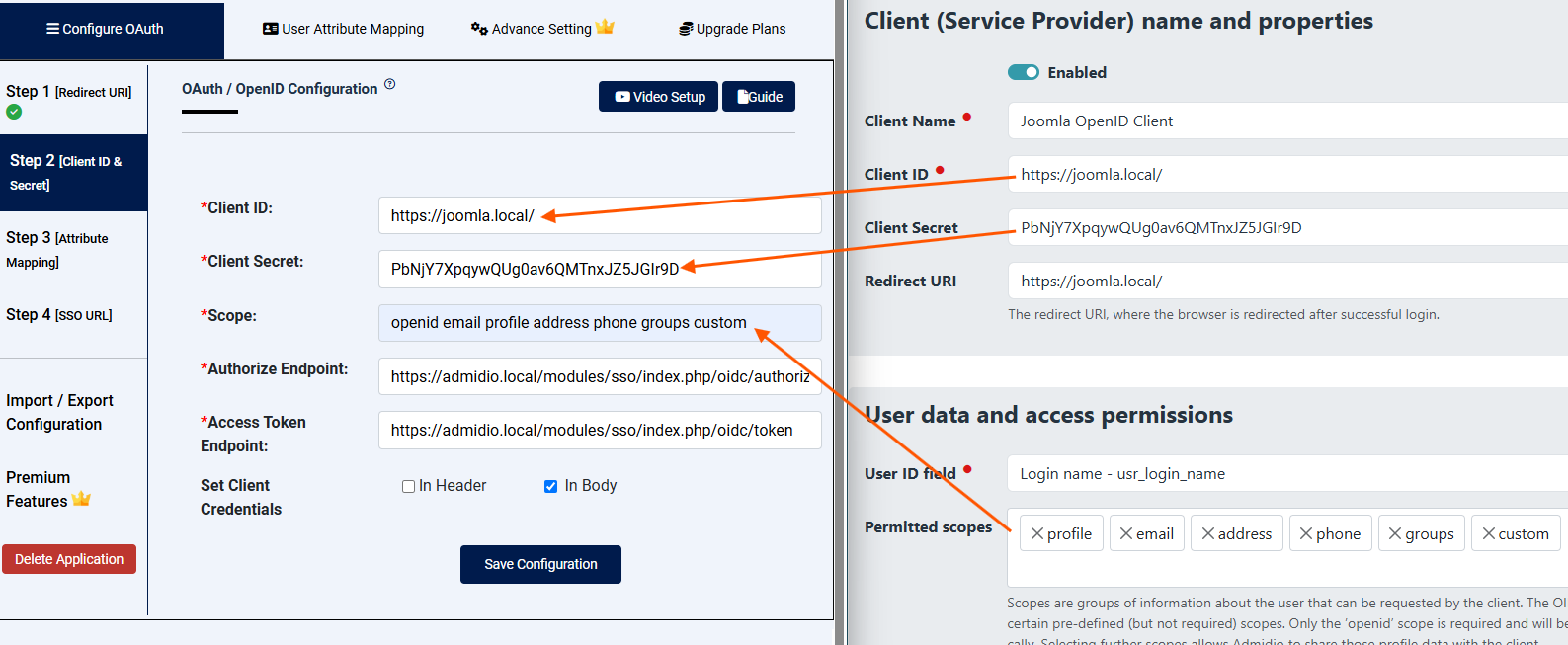 - The “Redirect URL” in Admidio's config should be the Redirect / Callback URL of Step 1 of the Joomla configuration (typically
