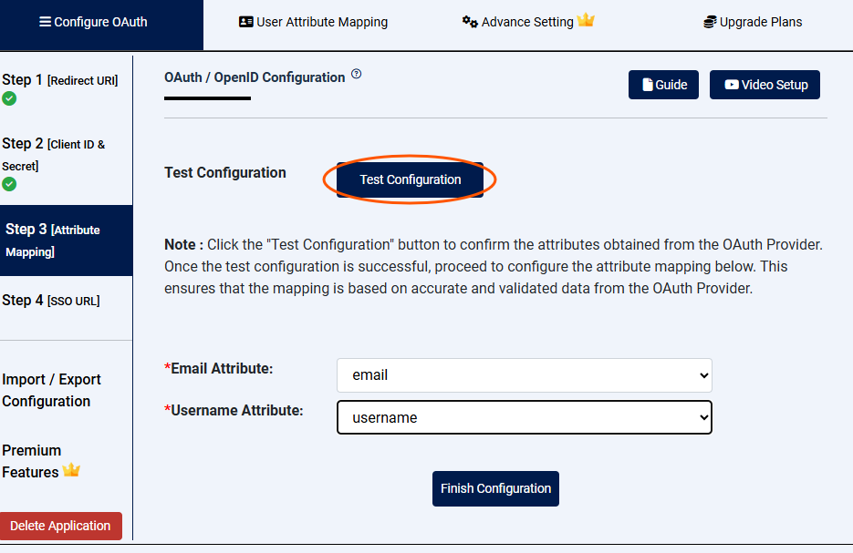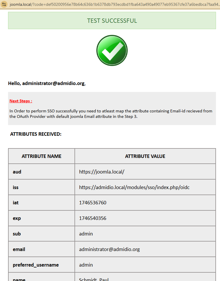 - Once this initial connection test is successful, the last setting is the mapping of the email and username in the lower half of the form of Step 3 in Joomla.