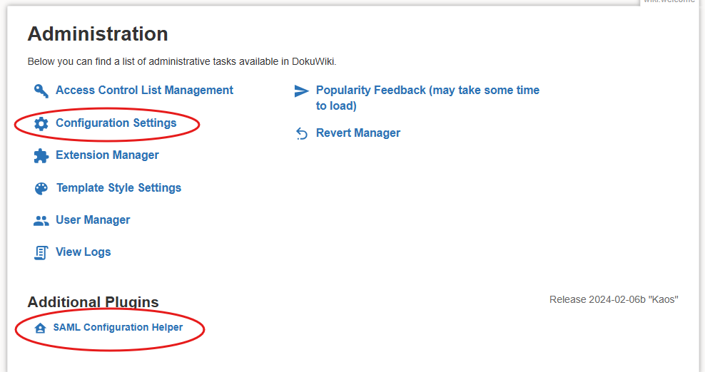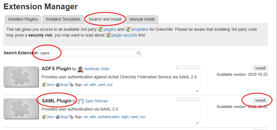 - At the Service Provider (SP) - DokuWiki in our case - install the extension to support SAML login.