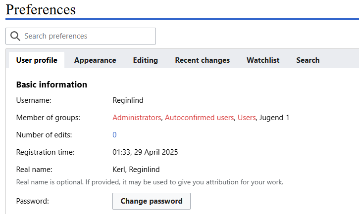 MediaWiki should now use the SAML login through the SimpleSAMLphp installation. Groups should be assigned as mapped in Admidio: