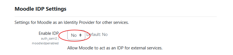 The last section would allow Moodle to act as a SAML IdP, which is not relevant in our case. Enabling IDP means that Moodle's user accounts can be used by other applications. This, however, is not our scope in this tutorial.